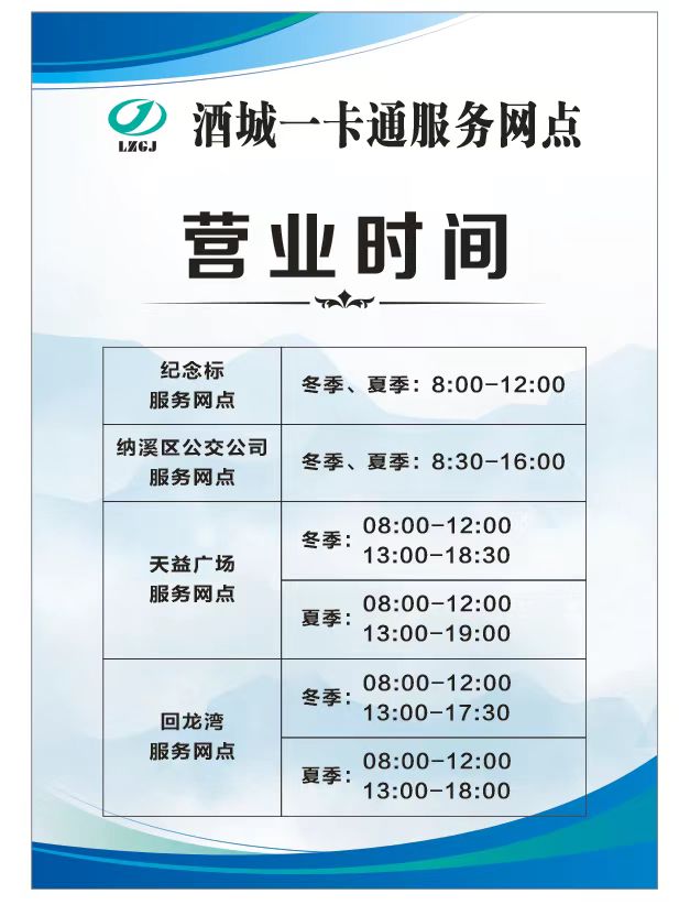 2.移資和退余額需持卡人本人攜帶身份證件到公交酒城一卡通服務(wù)網(wǎng)點(diǎn)辦理。