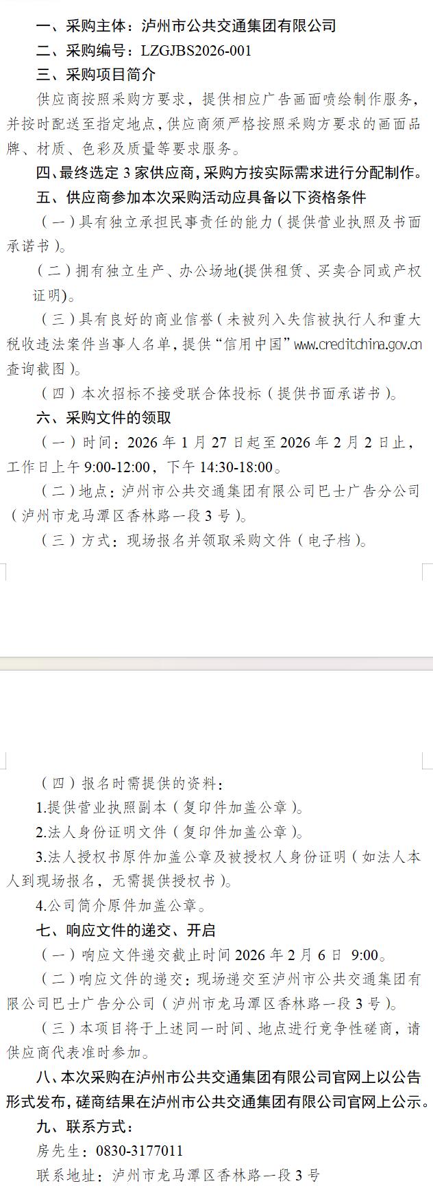 廣告畫面噴繪物品制作競(jìng)爭(zhēng)性磋商公告